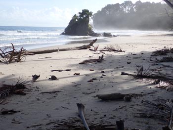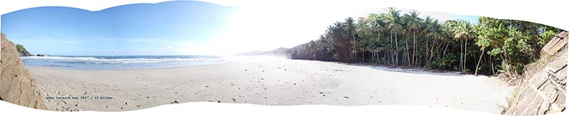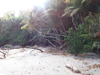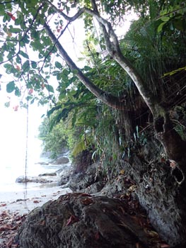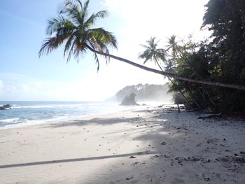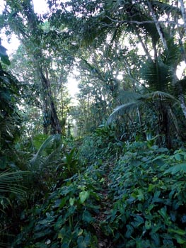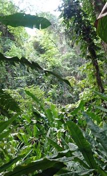 petite tacarib bay > grande tacaribe bay > madamas bay > pitite riviere > matelot (> toco) Comment: This part of the tour was the most strenuous: the path was often difficult to find, so it took me two days. On the evening of the first day, the night caught me in the middle of the forest. After I had made myself comfortable between boulders at the bottom of a ravine, a thunderstorm hit me right at the beginning of the night: wet and cold - again no sleep. The morning was ushered in by the raucous noise of a horde of howler monkeys. I spent the first half of the day following a wrong path for several hours, on which I was repeatedly forced to climb over fallen trees and other obstacles, only to end up in the middle of the mountains. In such cases, the rule is: don't panic! So I dragged my self all the way back, with lots of breaks, my performance was now at zero. Fortunately, I found the right path in the early afternoon, and after crossing one last river and passing lots of hills and the canyons in between, I arrived in Matelot in the evening, where I was able to get a room, beer and something to eat. The following day, a Sunday, there was no public transport, but I was picked up by a bus with schoolchildren and taken to Toco. From there, getting back to Port of Spain via Sangre Grande and Arima was a piece of cake. |
