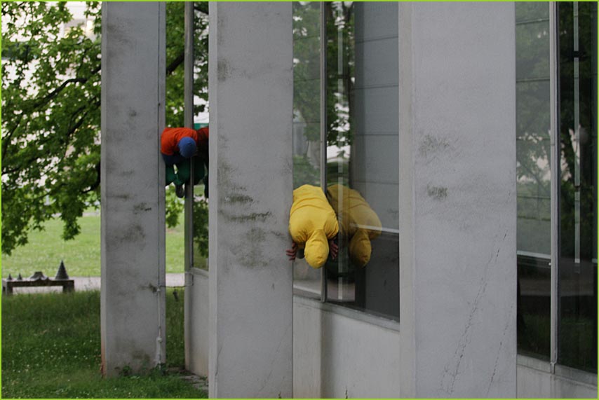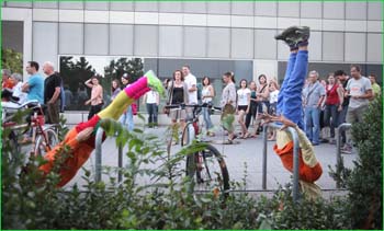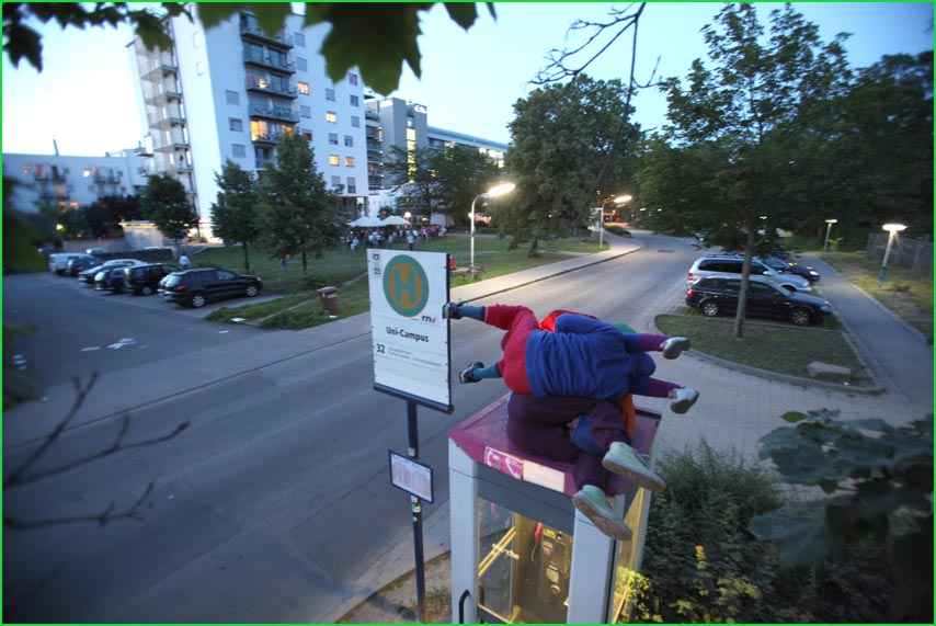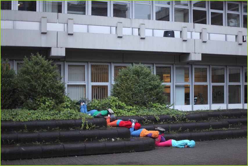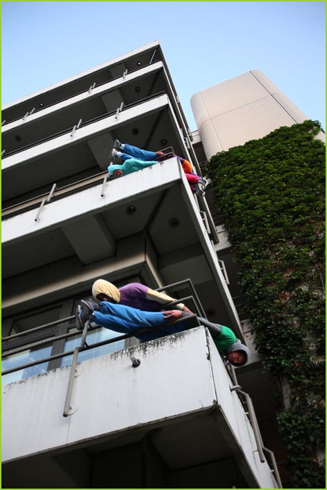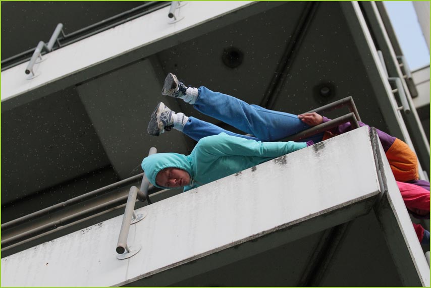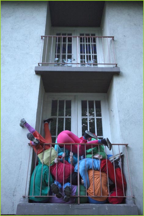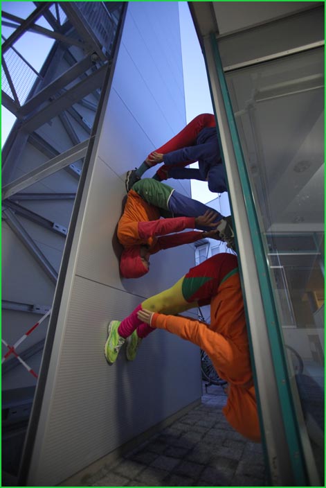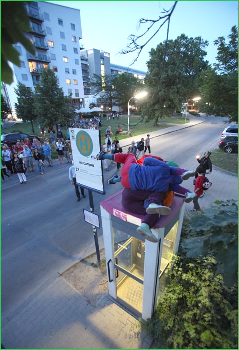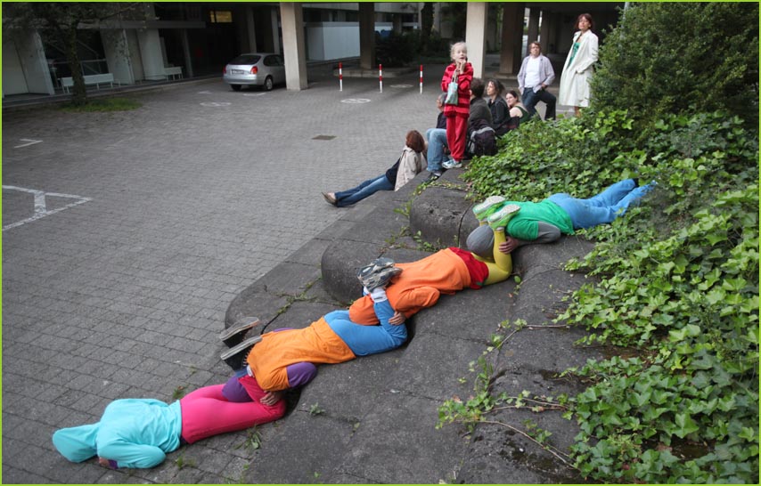 unterwegstheater: festivals/ gastspiele: artort012 - feldversuche: willi dorner - bodies in urban spaces / parkour ganzer campusesther, kate, stavros, ini, florian, lisa w., jan, eva, stine, lisa b., mario, yasmin, caro, juan, crystel, maren, tine, jens, constansa, raffael, tim, ivan, gloria