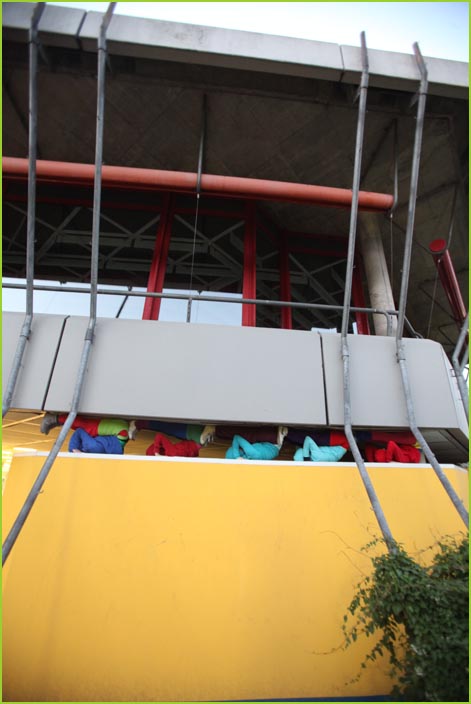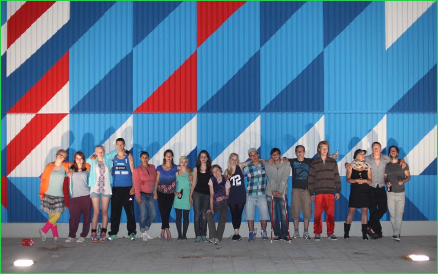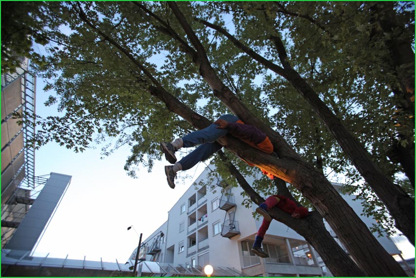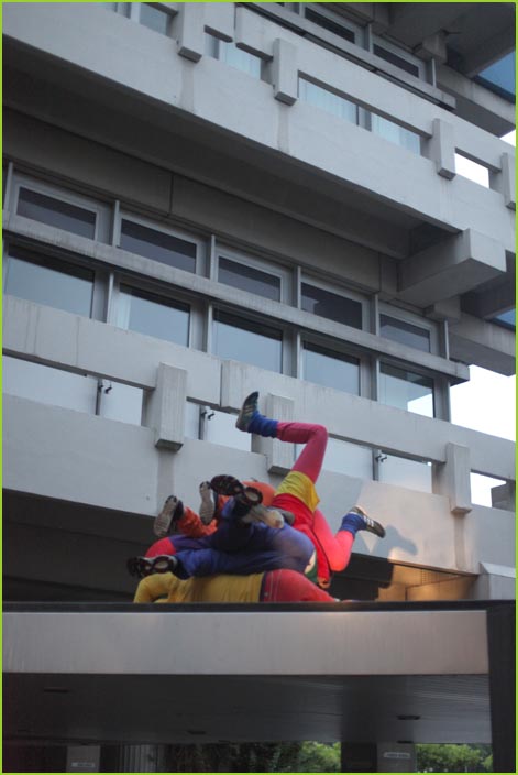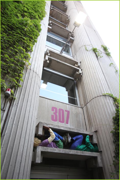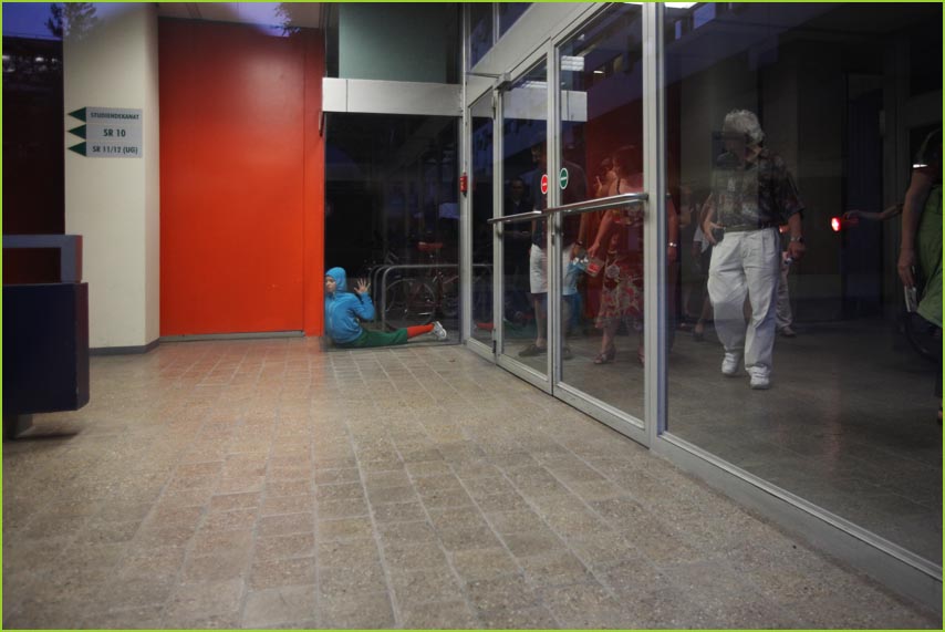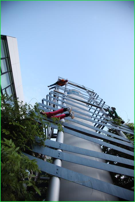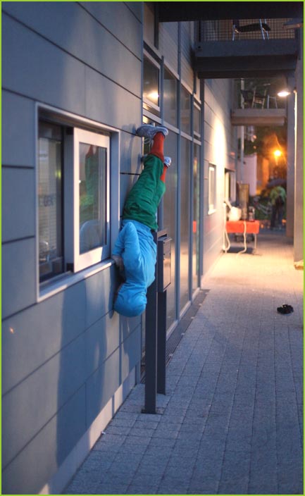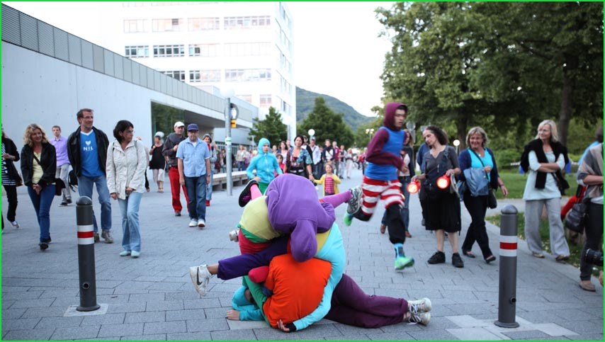 unterwegstheater: festivals/ gastspiele: artort012 - feldversuche: willi dorner - bodies in urban spaces / parkour ganzer campusesther, kate, stavros, ini, florian, lisa w., jan, eva, stine, lisa b., mario, yasmin, caro, juan, crystel, maren, tine, jens, constansa, raffael, tim, ivan, gloria