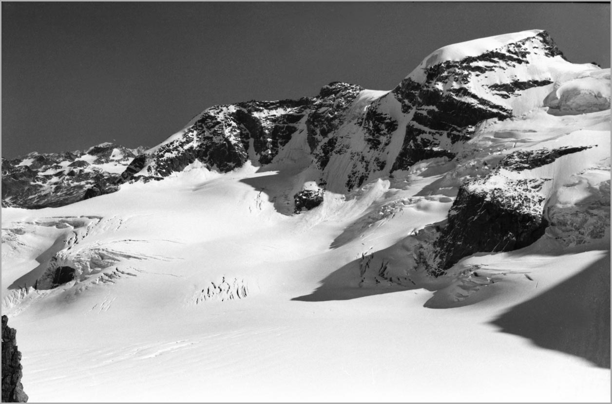 auf den bildern sind u.a. folgende gipfel zu sehen: piz bianco mit biancograt, piz bernina mit spallagrat, bellavistaterasse mit crast'agüzza, piz argient und piz zupo, piz palü (film mit luis trenker: hölle am piz palü !) mit ostgipfel, hauptgipfel und westgipfel (piz spinas), cambrena piz bernina 9/79 ...abgebrochen ![]() |