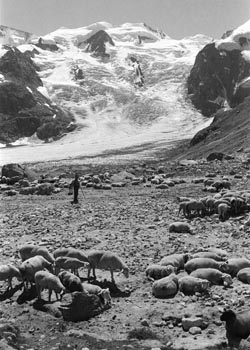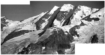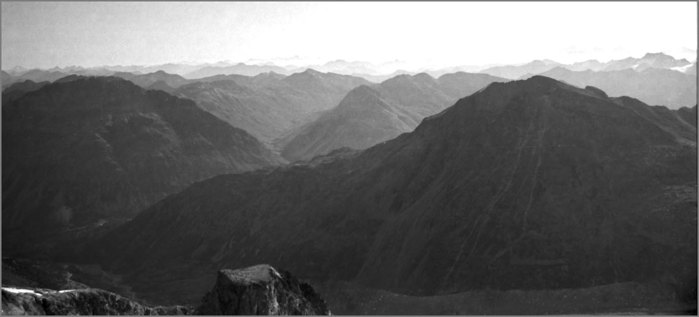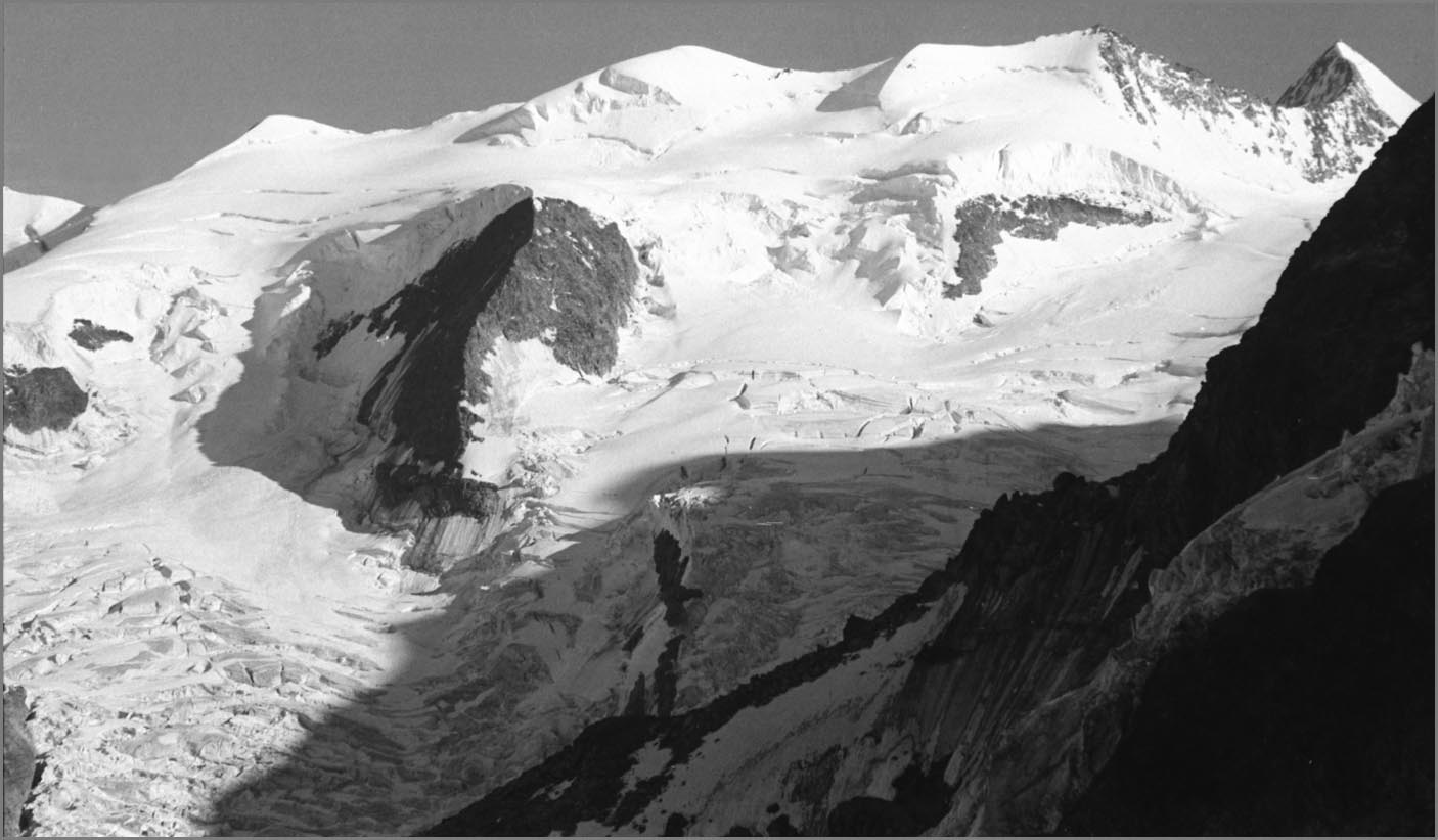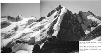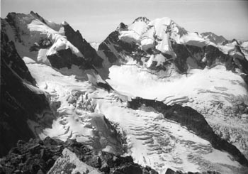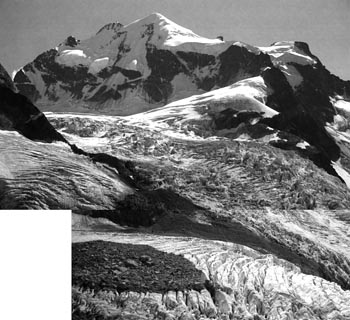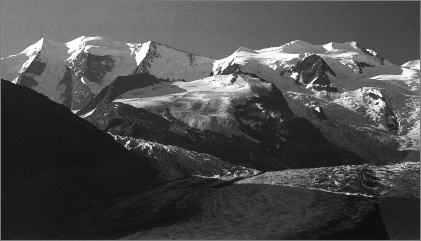 Fussnote: es ist unglaublich, wie viele sterne man sieht, wenn man nachts bei klarem himmel in 3000m höhe auf einer felsplatte neben einem gletscher liegt! (Und wie viele satelliten...) Und man kapiert, warum die milchstrasse milchstrasse heisst. bernina 9/89 ...auf den piz morteratsch ![]() |
