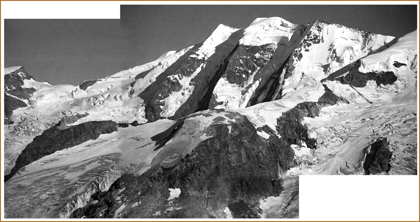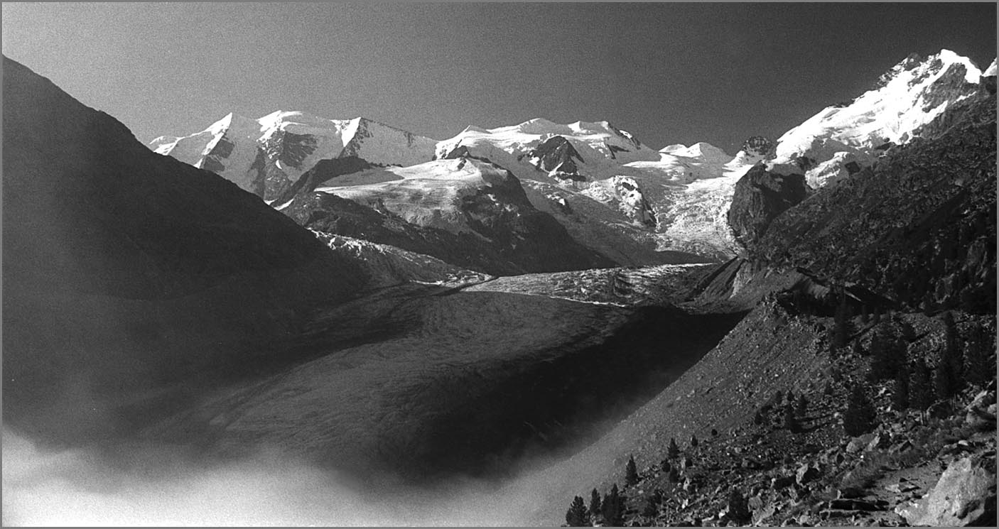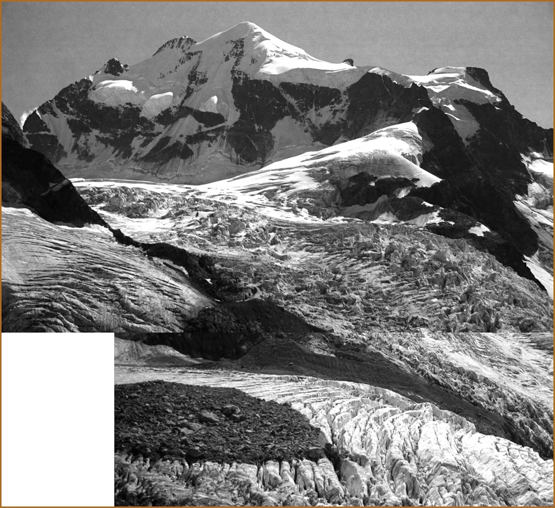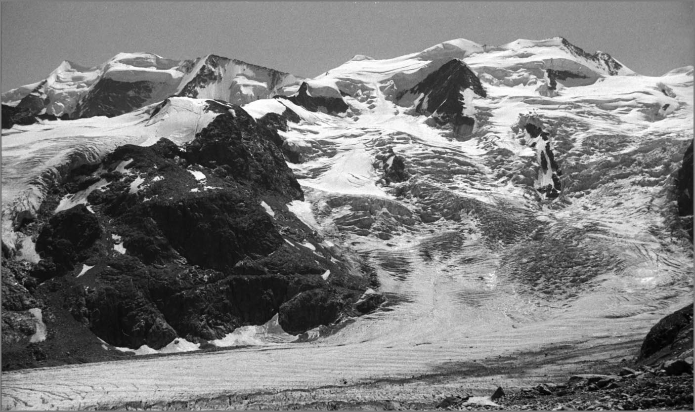 Morteratsch 1896 m > sur sem da boval über dem morteratschgletscher > vorbei an der chapanna da boval 2495 m > vadret boval-daddains (biwack unter freiem himmel) > fuorcla da boval 3347 m > piz morteratsch 3751 m > vadrettin da tschierva > vorbei an der chapanna da tschierva 2583 m > val roseg > pontresina