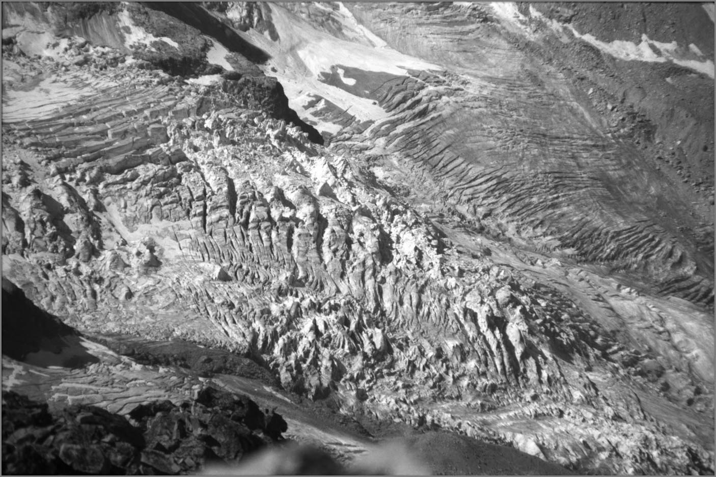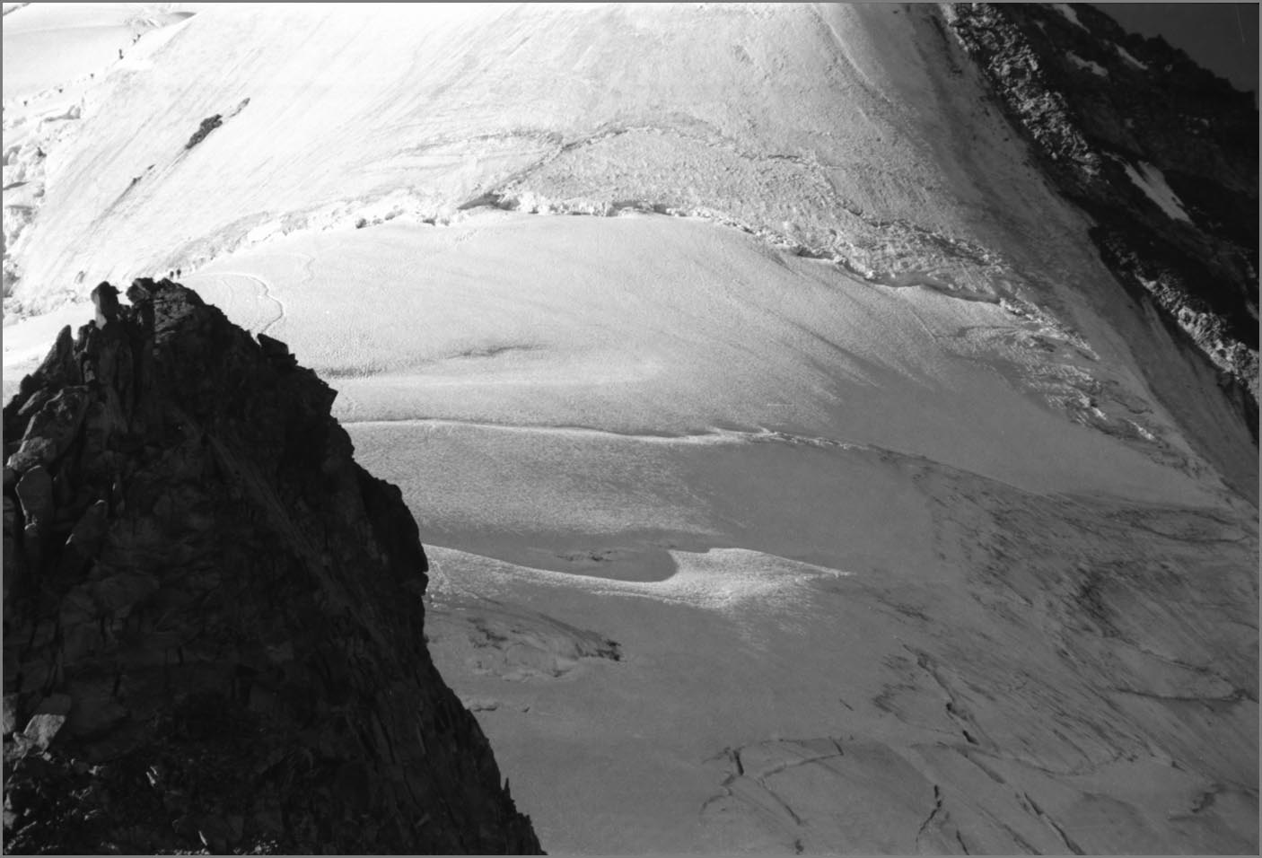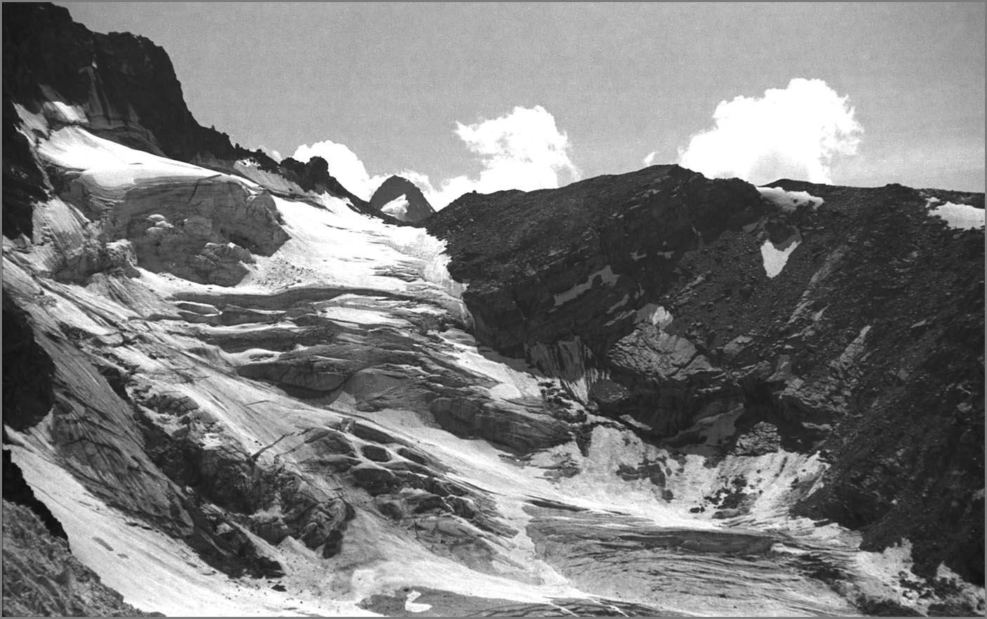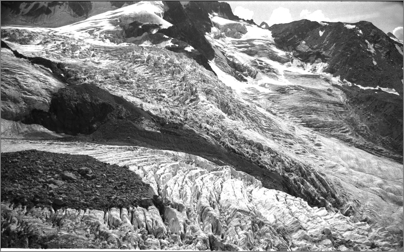 Morteratsch 1896 m > sur sem da boval über dem morteratschgletscher > vorbei an der chapanna da boval 2495 m > vadret boval-daddains (biwack unter freiem himmel) > fuorcla da boval 3347 m > piz morteratsch 3751 m > vadrettin da tschierva > vorbei an der chapanna da tschierva 2583 m > val roseg > pontresina