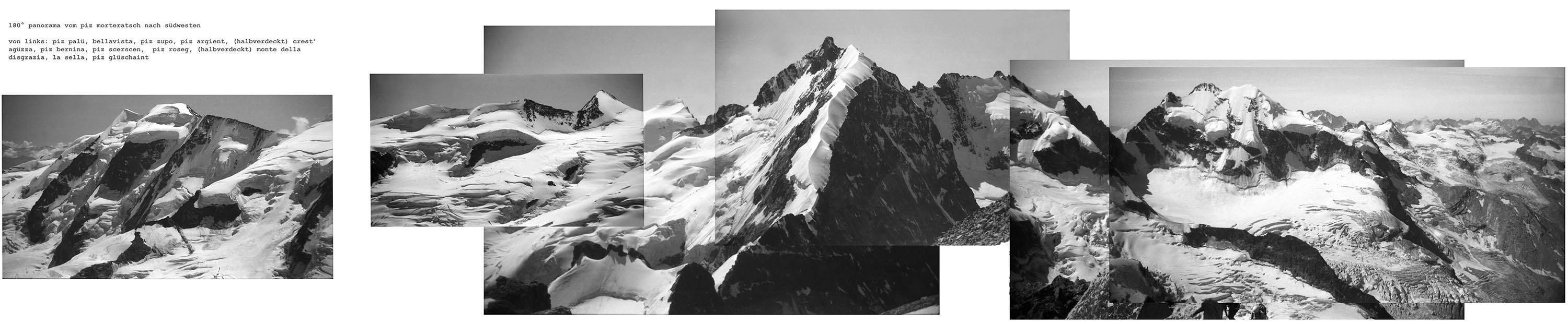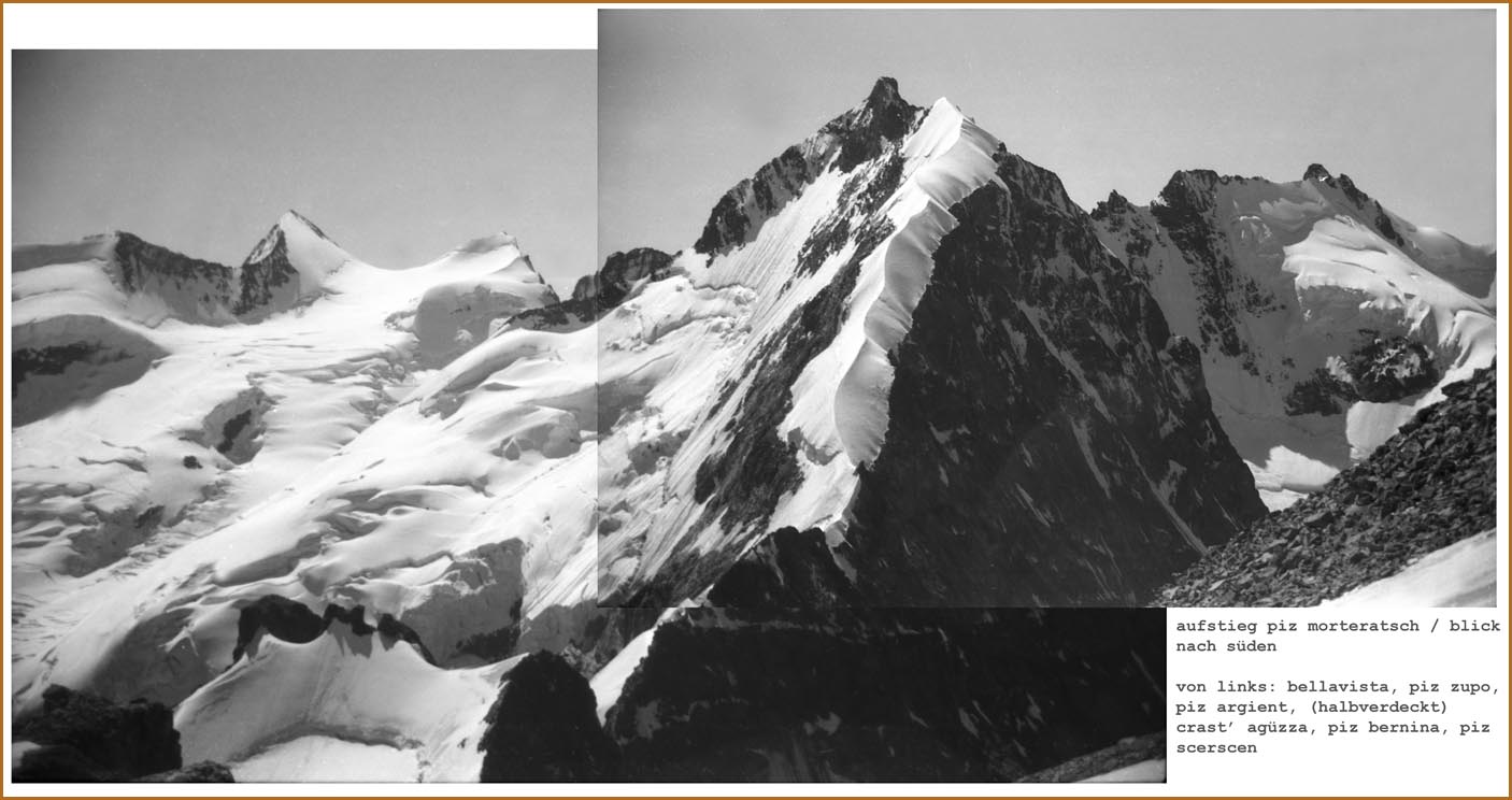 Auf den bildern sind u.a. folgende gipfel zu sehen: Piz palü, bellavista, piz zupo, piz argient, crast'agüzza, piz bernina, piz scerscen, piz roseg, la sella, piz glüschaint, monte della disgrazia