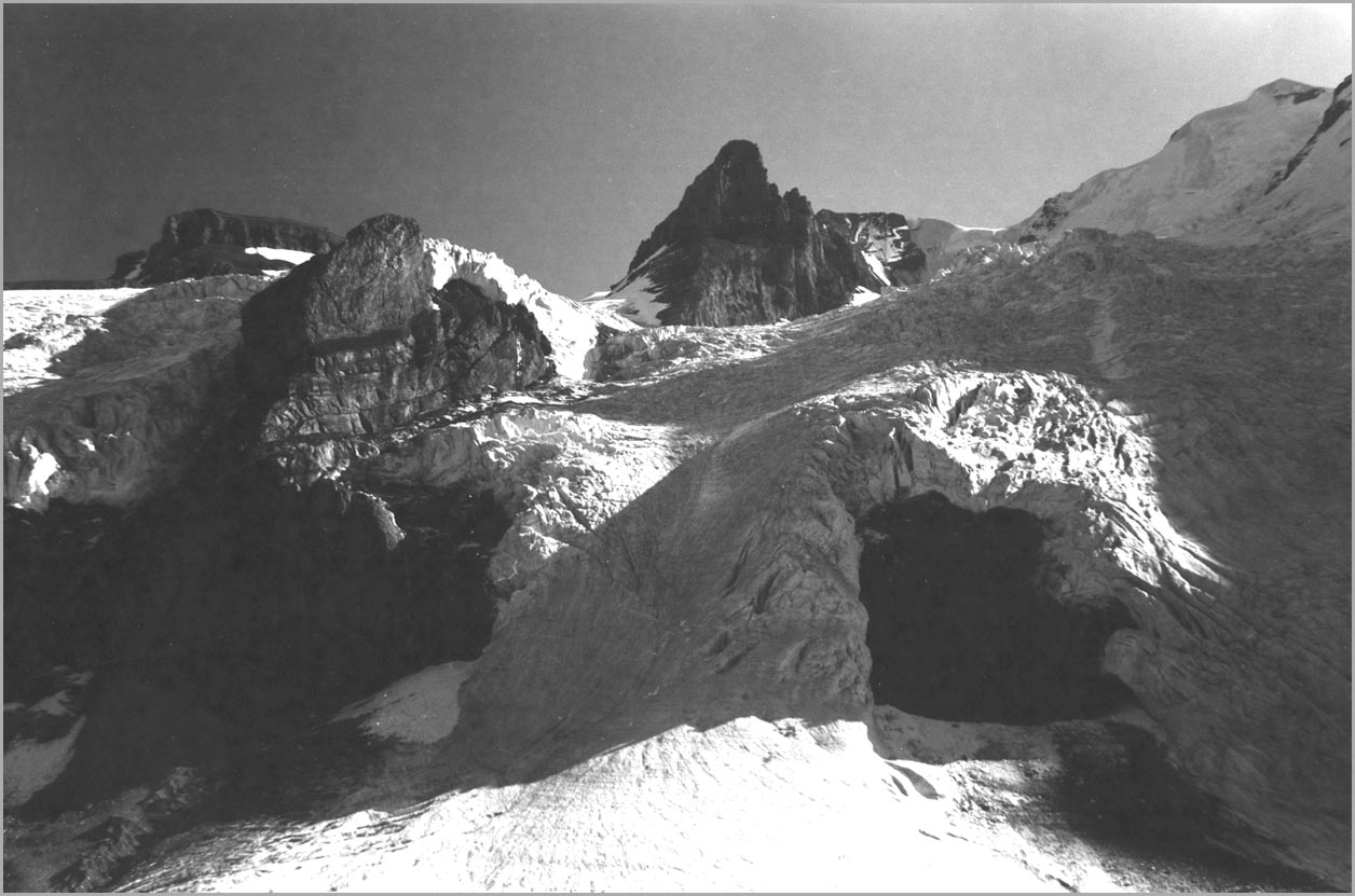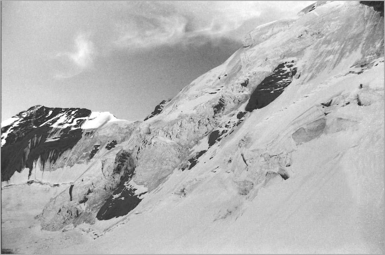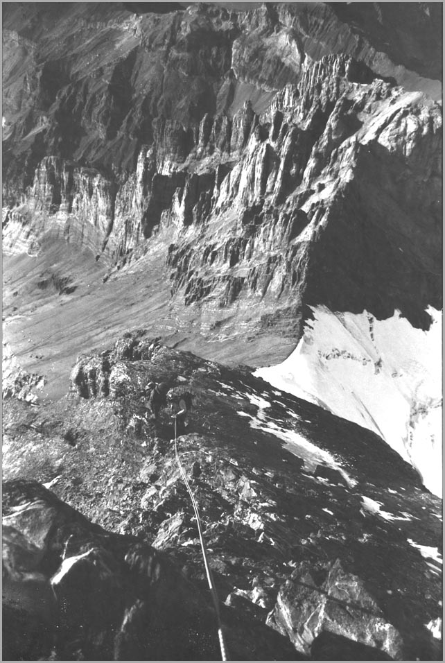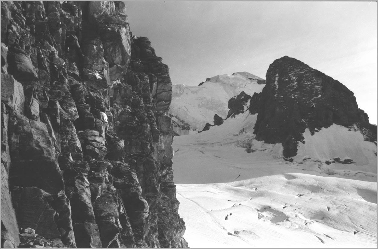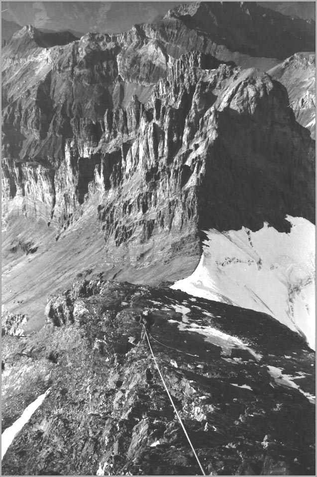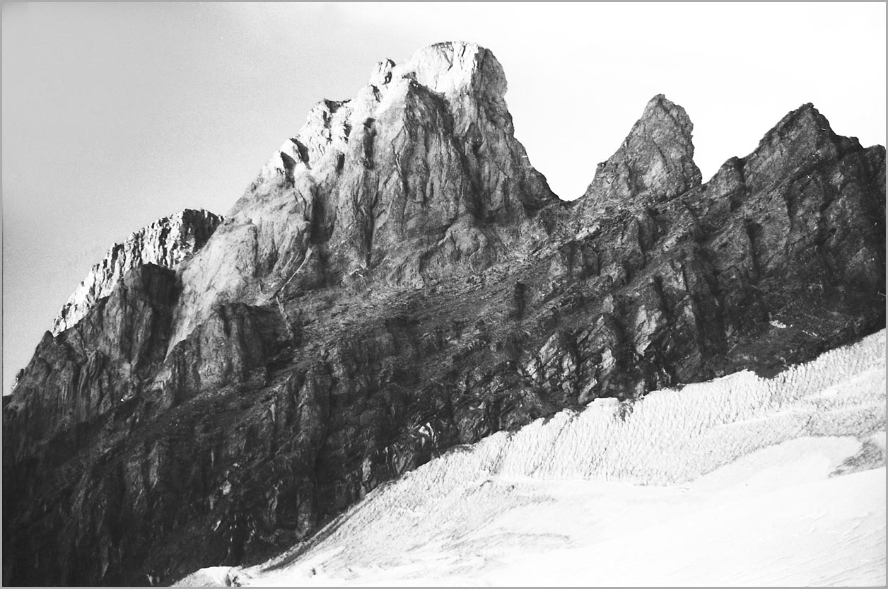 kandersteg 1176 m > öschinensee > blümlisalphütte 2840 m > rothornsattel > blümlisalphorn 3664 m > retour fußnote: die tour gilt als winterbegehung (11/85 !), obwohl in diesem jahr noch kein schnee gefallen war: sonst problemlose firnaufstiege waren rampen aus blankeis und/oder brüchigem fels. (ausserdem ging bei der entwicklung der filme gehörig etwas schief.) blümlisalphorn - 11/85 ![]() |
