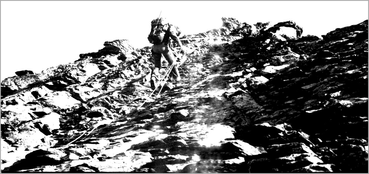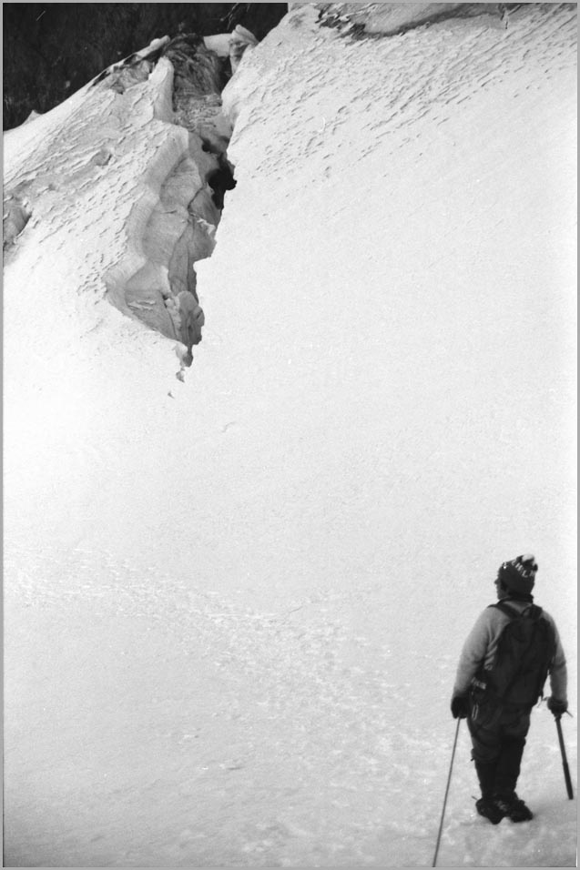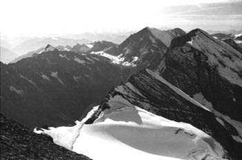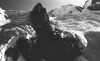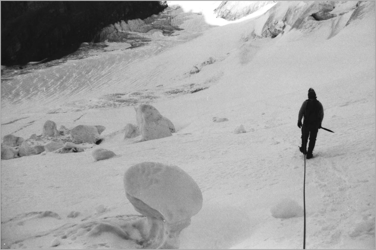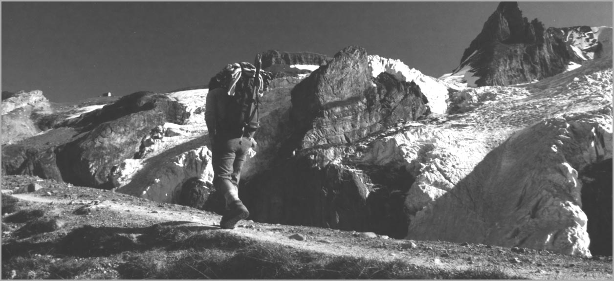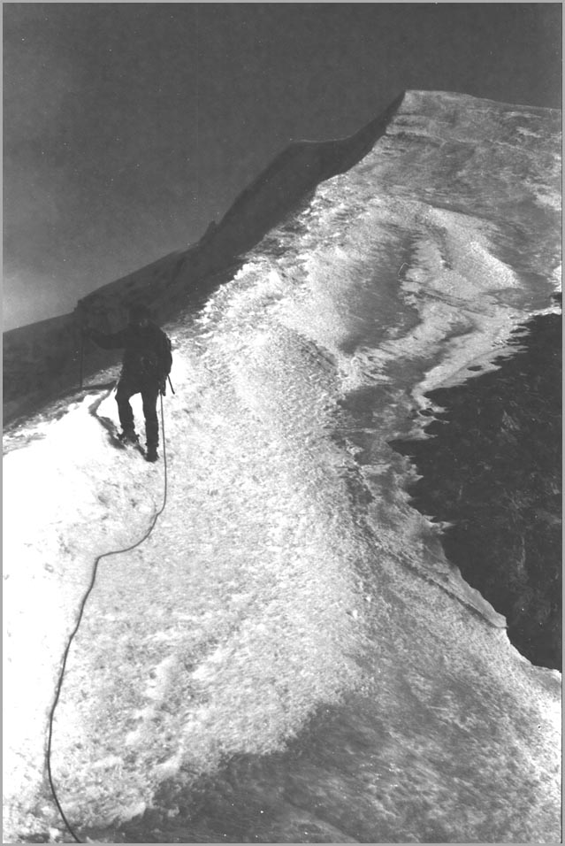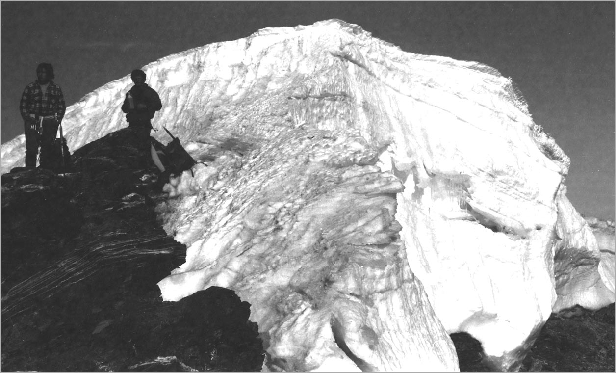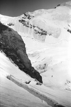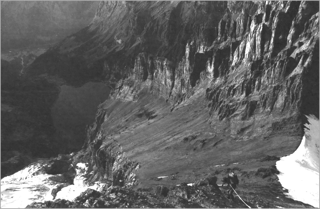 kandersteg 1176 m > öschinensee > blümlisalphütte 2840 m > rothornsattel > blümlisalphorn 3664 m > retour fußnote: die tour gilt als winterbegehung (11/85 !), obwohl in diesem jahr noch kein schnee gefallen war: sonst problemlose firnaufstiege waren rampen aus blankeis und/oder brüchigem fels. (ausserdem ging bei der entwicklung der filme gehörig etwas schief.) blümlisalphorn - 11/85 ![]() |