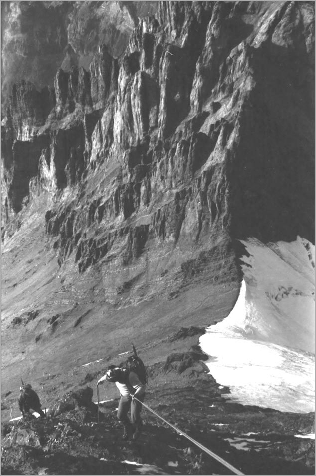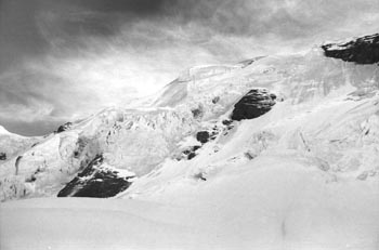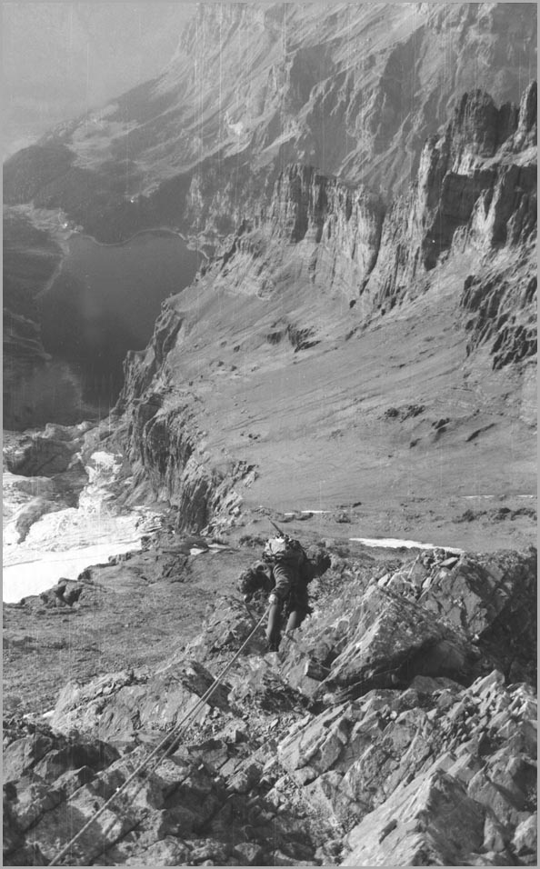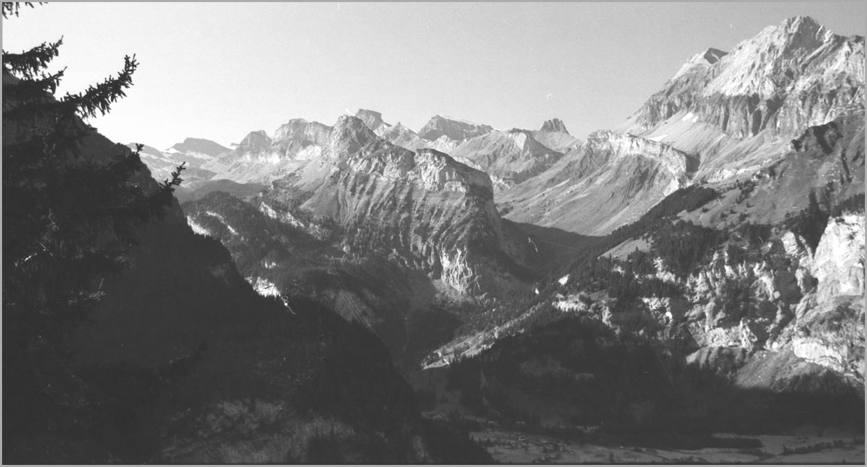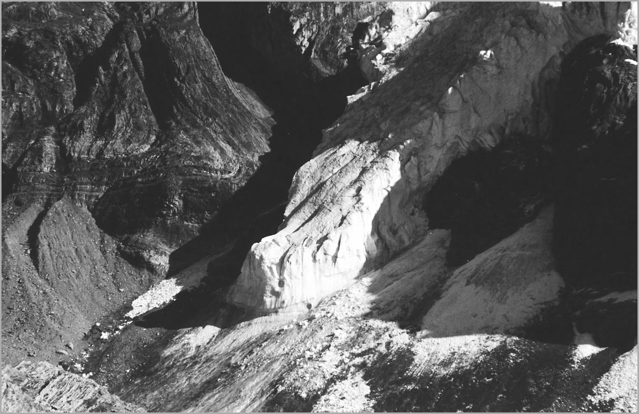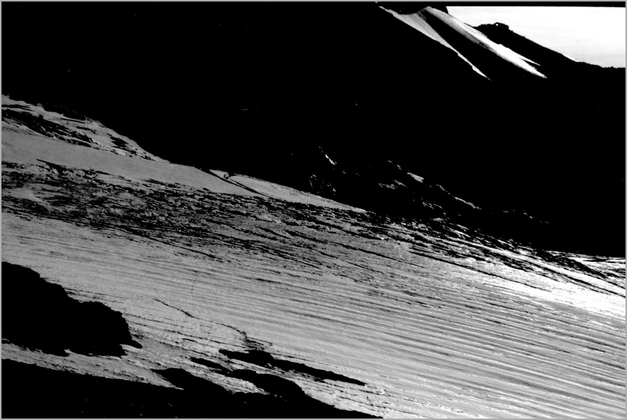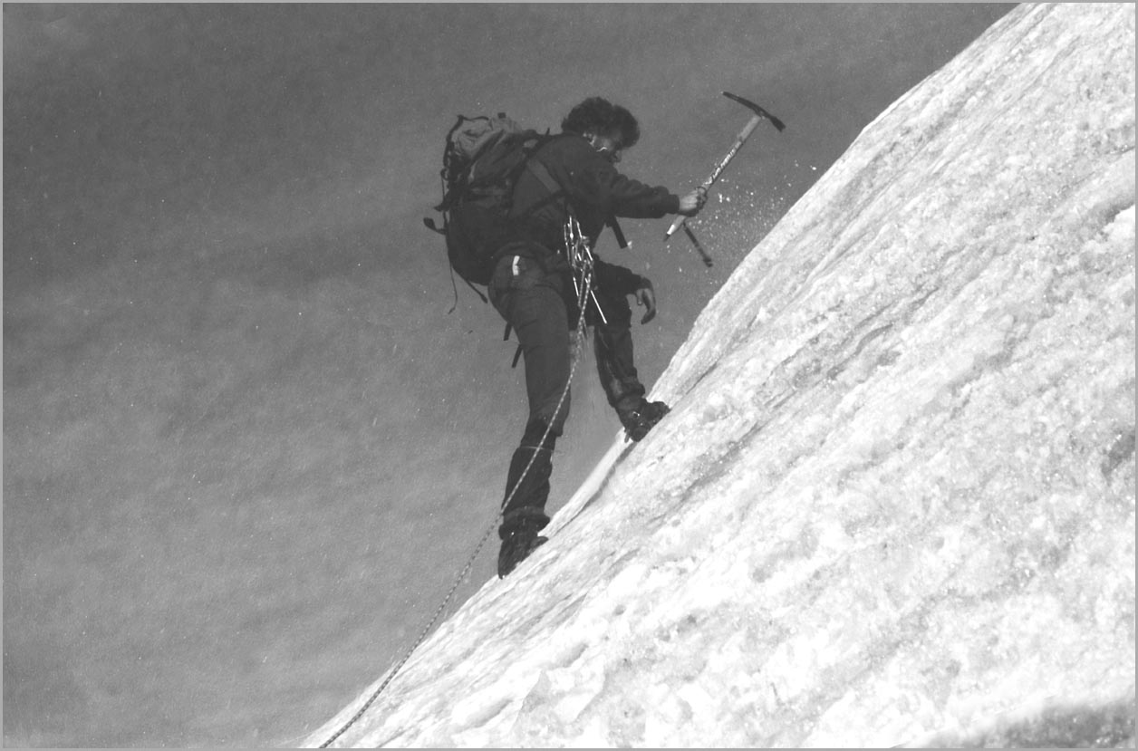 kandersteg 1176 m > öschinensee > blümlisalphütte 2840 m > rothornsattel > blümlisalphorn 3664 m > retour fußnote: die tour gilt als winterbegehung (11/85 !), obwohl in diesem jahr noch kein schnee gefallen war: sonst problemlose firnaufstiege waren rampen aus blankeis und/oder brüchigem fels. (ausserdem ging bei der entwicklung der filme gehörig etwas schief.) blümlisalphorn - 11/85 ![]() |