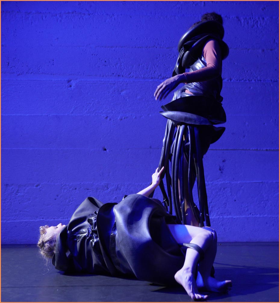 tanz: tanzszene heidelberg mannheim: theater felina areal mannheim: freier tanz im delta XI - 4.abend (proben/show 2-6-22): delphina parenti C, rebecca häusler & sarai patisson D, fritzi haußmann (art costumes) - the paradox of oneness