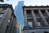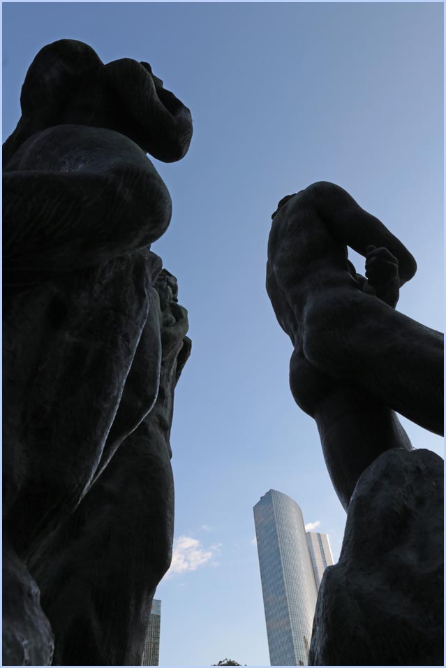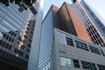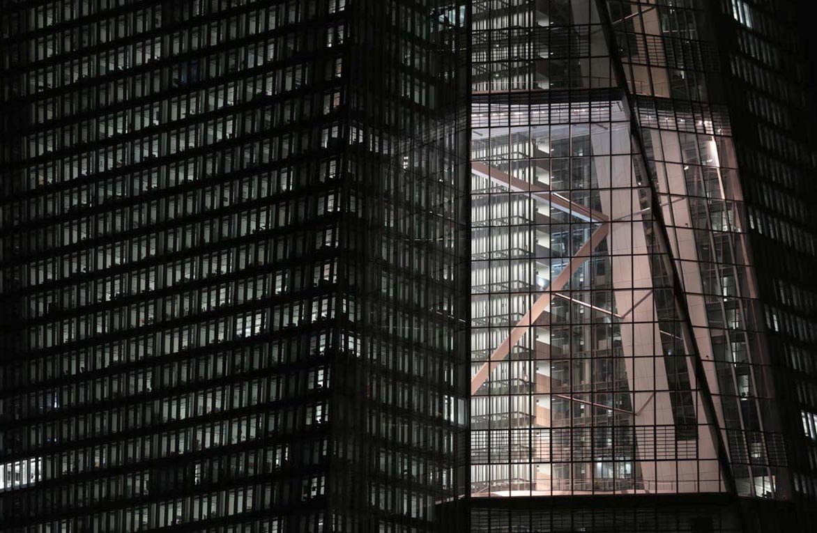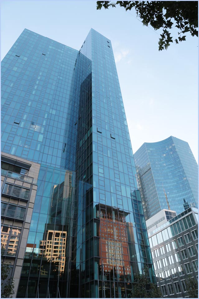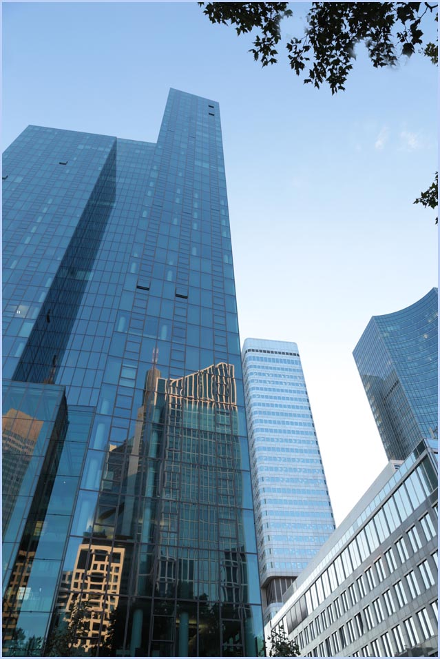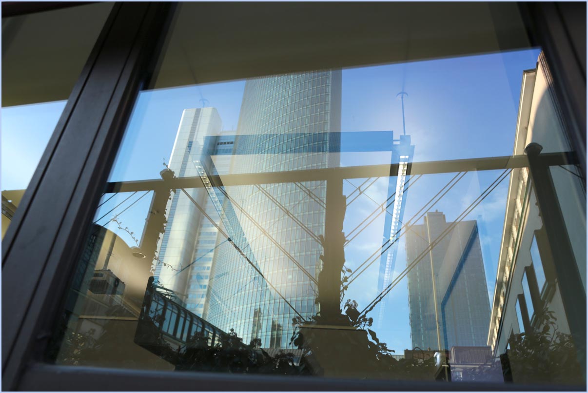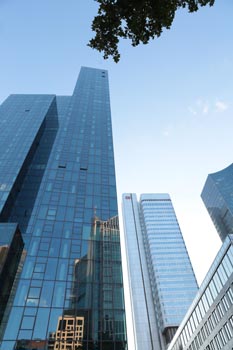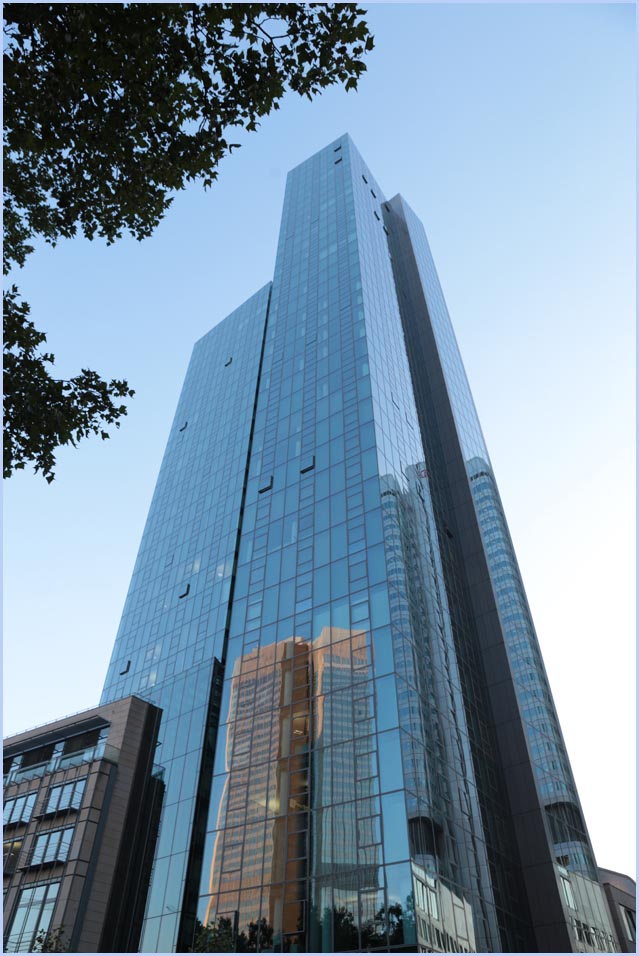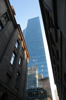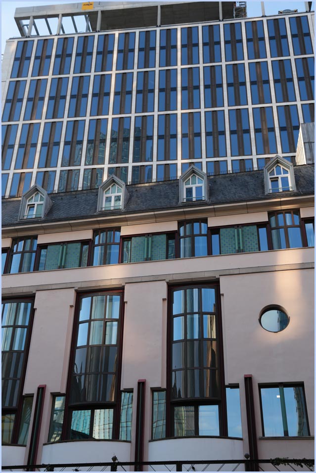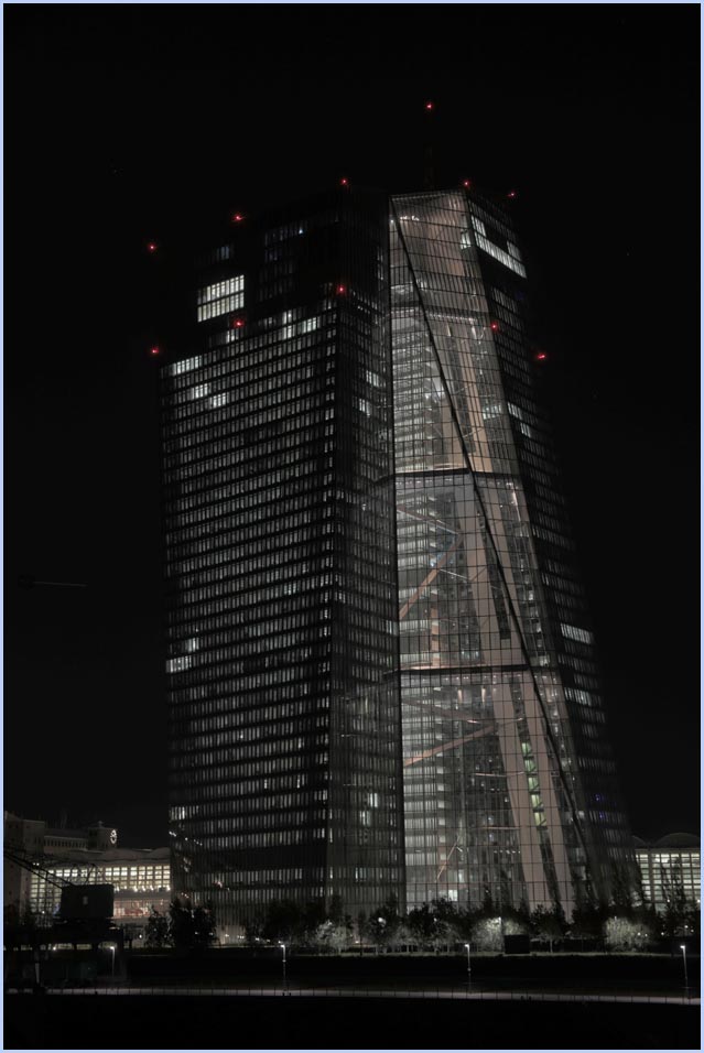 (Selbst)kritik des fotografen: Historisch stehen die höchsten und grössten Bauwerke in unseren städten für politische und/oder ideologische macht - kirchen schlösser, burgen. Dass die höchsten gebäude in unseren heutigen städten banken sind, versteht sich daher von selbst. Sie aber auf ein dekoratives und rein ästhetisches objekt zu verkürzen, ist reichlich unangemessen und naiv. Denn es gibt eigentlich nur zwei angemessene verhaltensweisen - auch das lässt sich historisch belegen - angesichts von herrschaftsarchitektur: vor ihr niederknien und sie anbeten - oder plattmachen. Oder will jemand im ernst behaupten, diese türme stünden für eine selbstbewusste demokratische gesellschaft? Blosses - scheinbar neutrales - fotografieren kommt jedenfalls dem anbeten sehr nahe, schliesslich handelt es sich ja nicht um historische denkmäler eine vergangenen epoche. Noch nicht. |