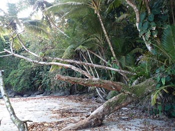 petite tacarib bay > grande tacaribe bay > madamas bay > pitite riviere > matelot (> toco) Comment: This part of the tour was the most strenuous: the path was often difficult to find, so it took me two days. On the evening of the first day, the night caught me in the middle of the forest. After I had made myself comfortable between boulders at the bottom of a ravine, a thunderstorm hit me right at the beginning of the night: wet and cold - again no sleep. The morning was ushered in by the raucous noise of a horde of howler monkeys. I spent the first half of the day following a wrong path for several hours, on which I was repeatedly forced to climb over fallen trees and other obstacles, only to end up in the middle of the mountains. In such cases, the rule is: don't panic! So I dragged my self all the way back, with lots of breaks, my performance was now at zero. Fortunately, I found the right path in the early afternoon, and after crossing one last river and passing lots of hills and the canyons in between, I arrived in Matelot in the evening, where I was able to get a room, beer and something to eat. The following day, a Sunday, there was no public transport, but I was picked up by a bus with schoolchildren and taken to Toco. From there, getting back to Port of Spain via Sangre Grande and Arima was a piece of cake. |