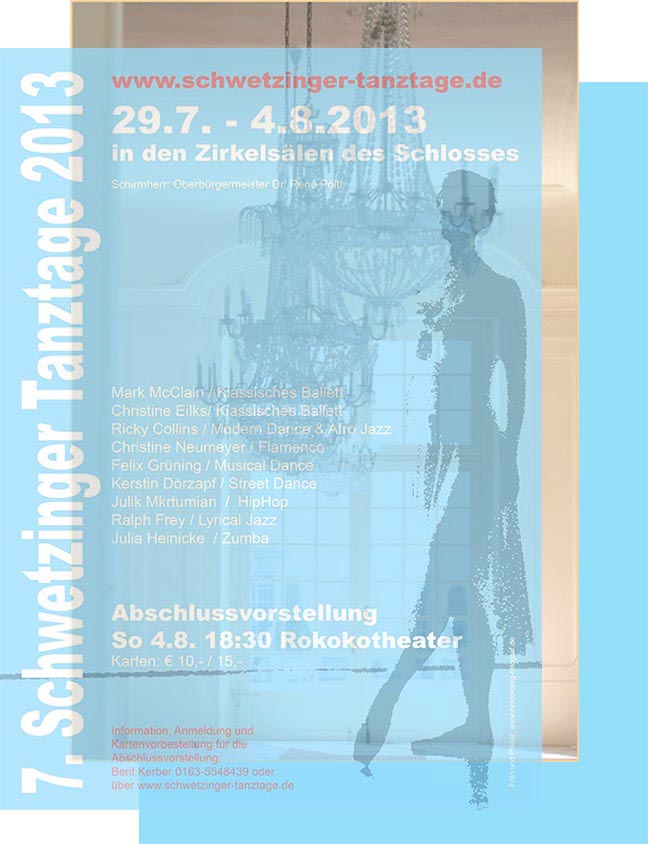 ![]() workshops: - ballett / marc mcclain, christine eilks - modern dance & afro jazz / ricky collins - hiphop / kerstin dörzapf, julik mkrtumian - musical dance / felix grüning - flamenco / christine neumeyer